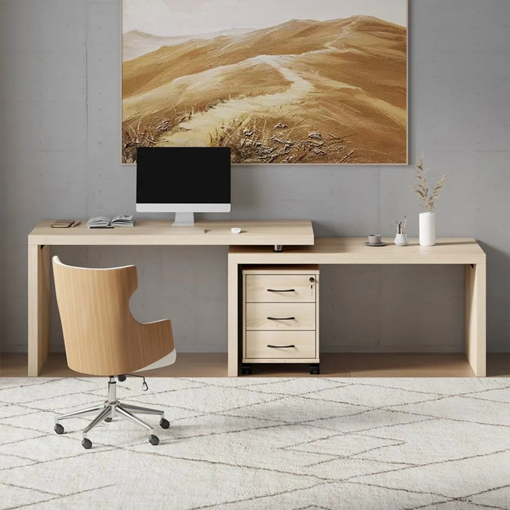 The Helix desk, with its innovative and functional design, transforms your workspace. Featuring an L-shaped structure, 360-degree rotation, and a movable drawer cabinet, it offers unparalleled flexibility for dynamic layouts.